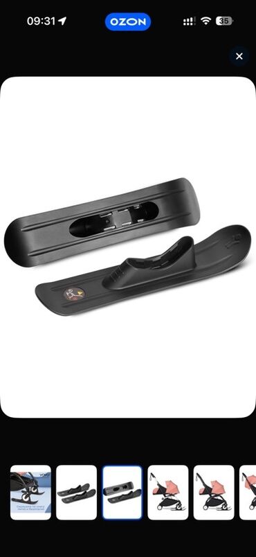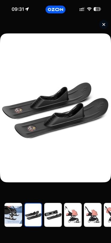 - Позволяют легко и безопасно катить коляску по снегу: колесо фиксируется в посадочном гнезде, а изогнутый носок лыжи обеспечивает плавное скольжение.