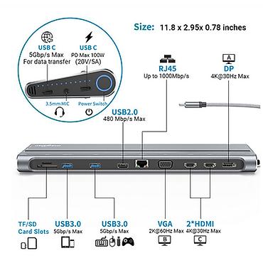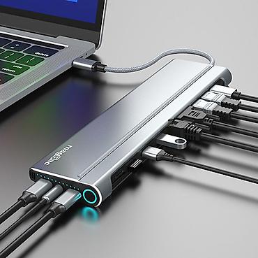 Идеально для ноутбуков с USB‑C, позволяет зарядку по PD, высокоскоростной обмен данными и подключение до трёх дисплеев (HDMI/DP/VGA) в зависимости от режима и возможностей устройства.