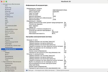 Apple MacBook Air 13" 8gb ram 256gb ssd батарея 237 циклов Характеристики: - Экран 13.3" Retina (2560×1600), IPS, тонкие рамки - Корпус из алюминия, цвет Silver - Клавиатура с подсветкой, трекпад F...