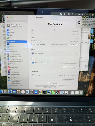 💻MacBook Air M3 🔴чип М3 🔴Память 8/256gb 🔴Retina display 2k 13.3 дюйма 💻Состояние нового ноутбука Циклов 12 🔋батарея 100% 💰Цена всего 66900 сом