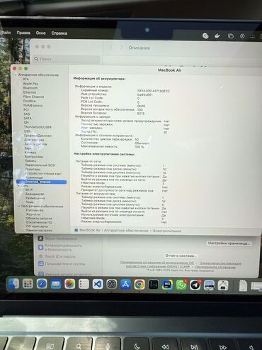 💻MacBook Air M1 🔴чип М1 🔴Память 8/256gb 🔴Retina display 2k 13.3 дюйма 💻Отличное состояние Циклов 98 🔋батарея 93% 💰Цена всего 39900 сом