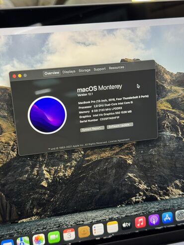 • MacBook Pro 13 2016 • Intel Core i5 • 8GB RAM • 256GB SSD • Батарея: 321 цикл • Состояние отличное, но есть черная полоска внизу экрана (смотрите последнее фото) • Привезён из США • Без комплекта...