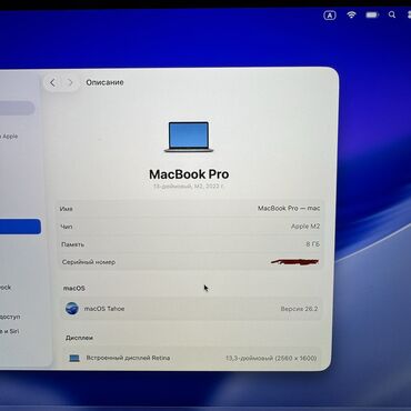 - Память и хранилище: быстрая оперативная память unified, скоростной SSD (конфигурация типовая для модели M2; уточняйте по скриншоту Системной информации при необходимости).