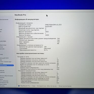- Аккумулятор: 216 циклов зарядки, здоровье 92%.