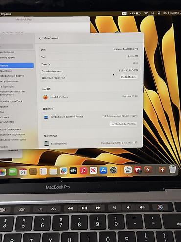 MacBook Pro M1 | 8GB/256GB Заряд держит в районе 10-14 часов MacBook