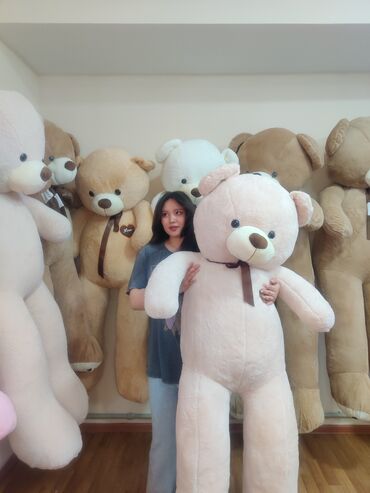 Огромные плюшевые медведи - Размер: гигантские мишки ростом примерно с человека — удобно обниматься и фотографироваться. - Варианты: розовый медведь с тёмным бантом; белый медведь с сиреневым шарф...