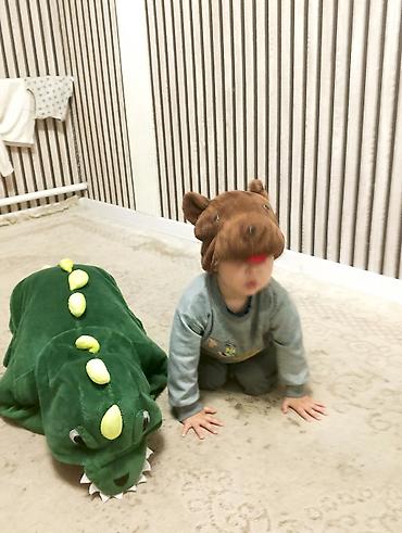 - Большая плюшевая игрушка зеленого цвета с мягкими шипами на спине и мордочкой с зубками.