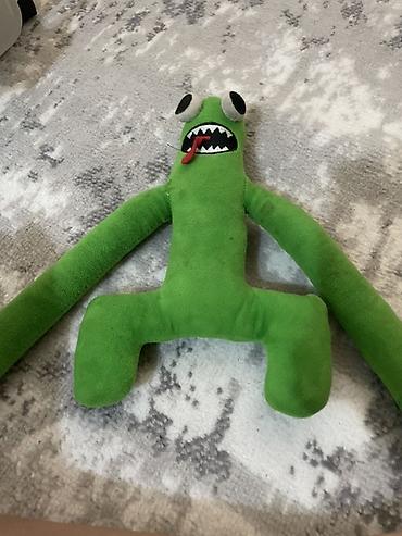 - Дизайн: большие выпуклые глаза, зубастая улыбка, красный язычок; очень длинные гибкие руки и ножки — удобно обнимать и брать с собой.