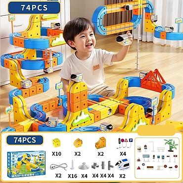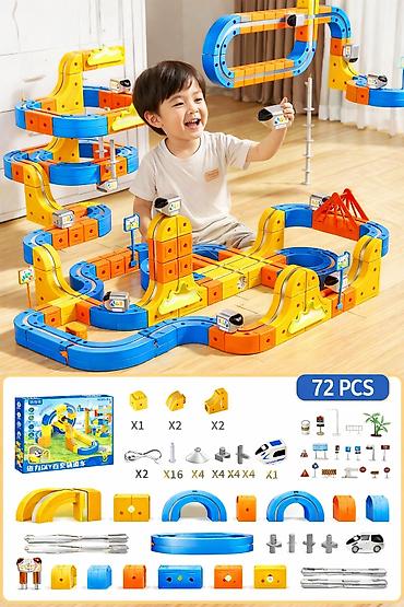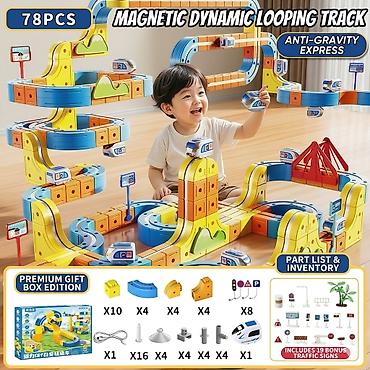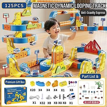 Магнитный конструктор “Волшебная железная дорога” — многоуровневая трасса для скоростных поездов с эффектом «антигравитации». Детали крупные, яркие, с магнитным креплением: легко соединяются, позволяют строить спирали, горки, мосты, туннели и длинные виражи.