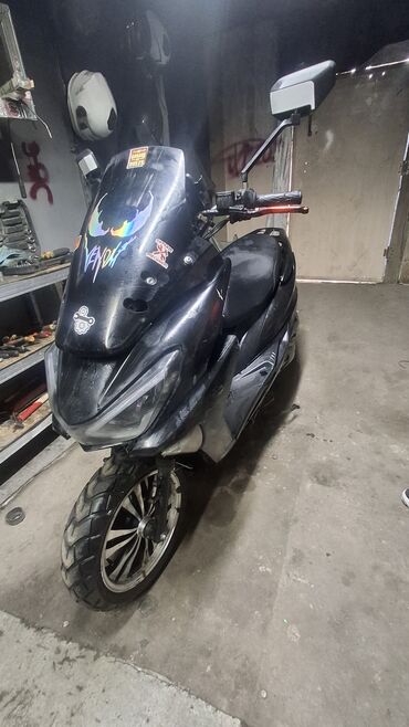 - Кузов: черный пластик, обтекатели формата максискутера, ветровое стекло с наклейками.