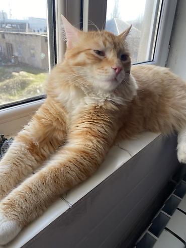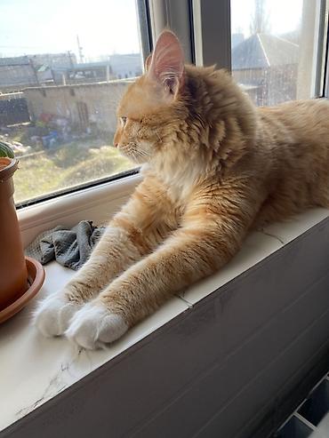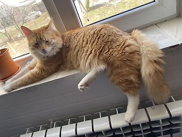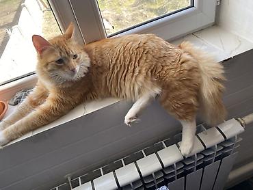 Рыжий домашний кот - Окрас: насыщенный рыжий с мягкой полосатостью - Тип шерсти: плотная, пушистая, средней длины - Глаза: янтарные - Уши: треугольные, аккуратные - Тело: крупное, мускулистое, дли...