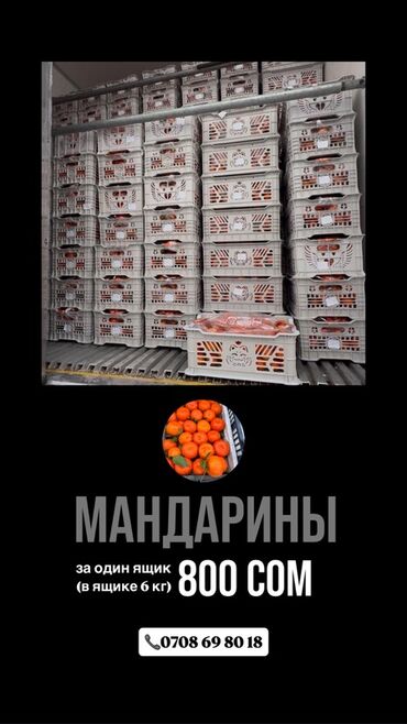 Мандарины . все Фрукты ,яблоки до дома,винограды ящиками высоком качестве. - Сочные, сладкие, с ярким цитрусовым ароматом. Мандарины ящик 850 сом в любом количестве ,есть доставка. очень много вс...
