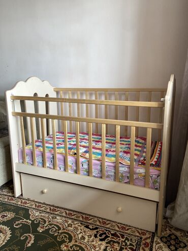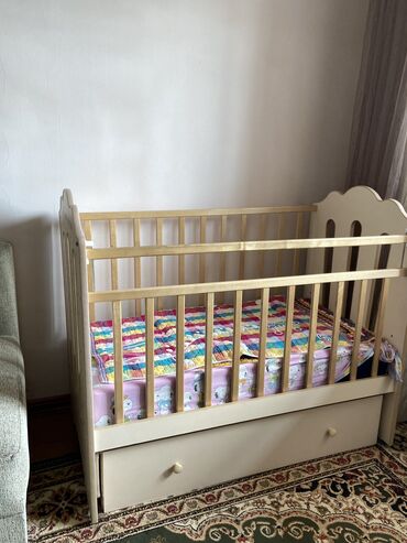 Манеж- кровать из дерева, б/у в хорошем состоянии, в комплекте матрас, цена 2000 сом.