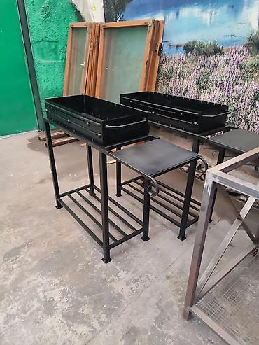 Мангал классический ширина 35 глубина 11 длина метр чашка съёмная с поддувалом столик 35-40 см разборный есть разные другие варианты можем изготовить любые металлоконструкции