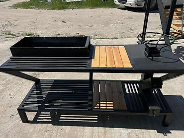 На заказ делаем! Уличная кухня-мангал на тележке Функциональная станция для приготовления на углях и открытом огне: - Мангал с бортиками и прорезями под шампуры - Съёмная решётка-гриль и зона под...