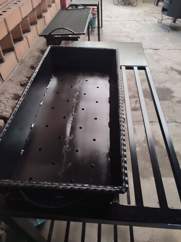 мангал есть в наличии можно на заказ чашка съёмная ширина чашки 28-29 длина чашки 80 85 по краям столики съёмные металлические имеются поддувало
