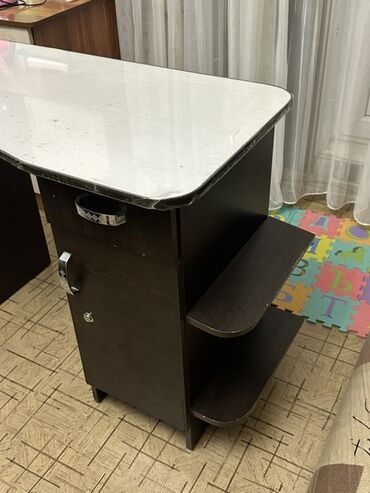 Компактный парикмахерский/маникюрный стол - Столешница: белая, глянцевая, с закруглёнными углами и фигурной линией переднего края. - Основание: темное (ЛДСП). - Организация хранения: - тумба с д...