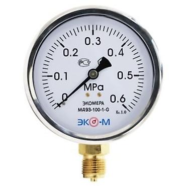 Манометр общетехнический ЭКОМЕРА МД02 для измерения давления газообразных и жидких, не сильновязких и кристаллизующихся сред, не агрессивных по отношению к медным сплавам (вода, пар, газ).