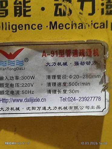 - На корпусе указаны: DALI Series Drain Cleaning Machine; производитель Shenyang WanTong DaLi Machinery Co., Ltd; сайт: www.dalijixie.cn.