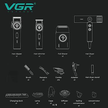 VGR, набор для парикмахера, машинка для стрижки, триммер, шейвер, фен, VGR Stepless Pro 4 в 1, профессиональный набор, уход за волосами, груминг, V-001 Pro, V-977, BLDC motor.
