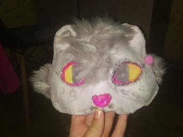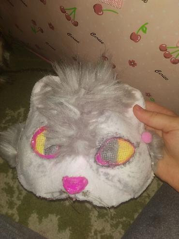 - Материалы: пластиковая основа, верх — мягкий искусственный мех серого цвета, декоративные элементы (усы, розовый носик и окантовка глаз)