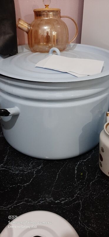 3) Большая эмалированная кастрюля с крышкой 1500 с