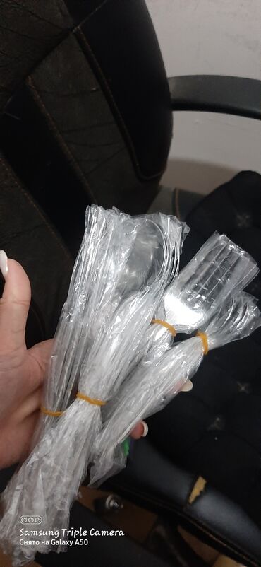 - Наборы 6 вилок и по 6 больших и чайных ложек, упакованные в индивидуальные пакеты, связки резинками