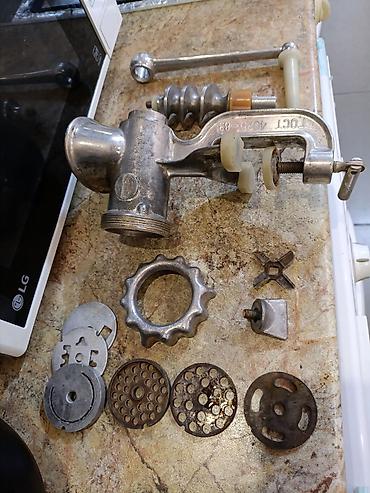 Ручная мясорубка с креплением к столу (винтовой зажим). Корпус из литого чугуна, шнек металлический, ручка с пластиковой рукояткой.( Гост)