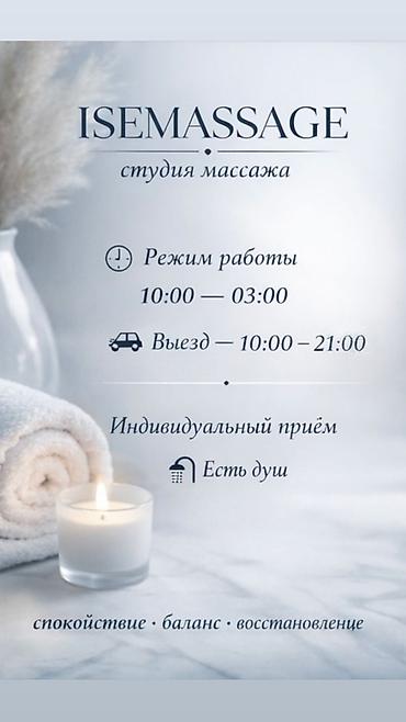 Выезд выезд А так же можно у нас в салоне Профессиональные услуги массажа Ise MASSAGE - Индивидуальные сеансы классического и расслабляющего массажа - Лимфодренажные и антистресс‑программы - Точе...