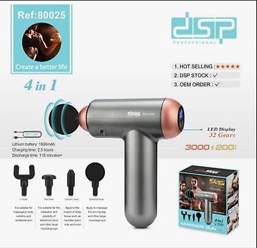 Перкуссионный массажный пистолет 4 в 1, 4 насадки, "DSP" 80025