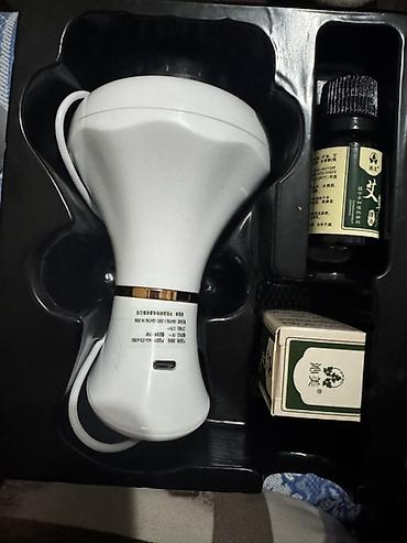 - В комплекте на фото видны: прибор JTKJ, флакон масла/эссенции и коробочка с аксессуаром.