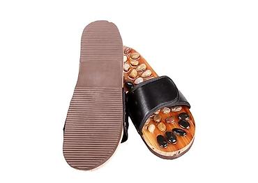 Массажные тапочки-рефлексотерапия - Тип: шлёпанцы с акупрессурными массажными элементами - Конструкция: плотная подошва с выпуклыми массажными шипами/шариками разного диаметра (контрастные белые и...