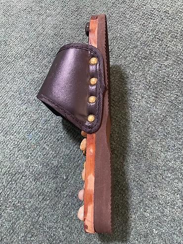 - Конструкция: деревянная платформа с округлыми вставками‑камешками по всей стельке и в зоне пальцев для точечного массажа стоп.