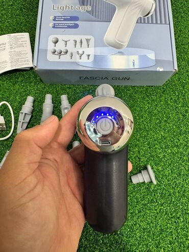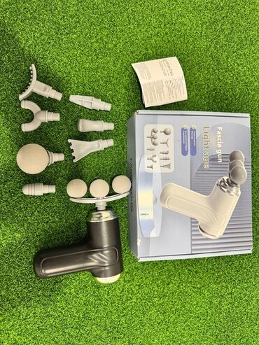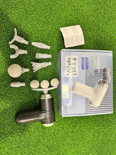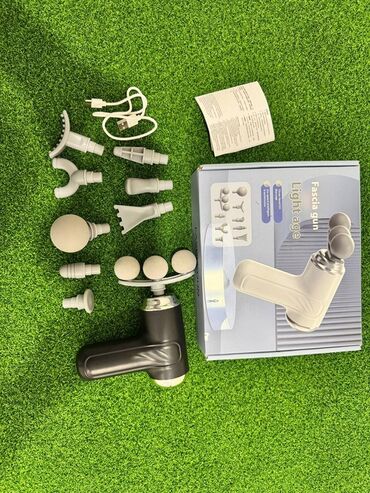В комплекте: массажный пистолет, набор насадок (на фото), USB‑кабель, инструкция, фирменная коробка. Цвет корпуса: черный.