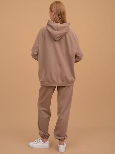 Женский комплект: худи + брюки - Свободный крой, оверсайз силуэт - Длинное худи с капюшоном и большим карманом-кенгуру - Низ худи с широким притачным манжетом, по бокам небольшие разрезы для свобо...