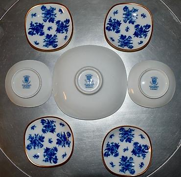 Набор украшен насыщенными кобальтово-синими цветочными мотивами и тонкой позолотой по краю («Echt Cobalt»).