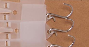 - Конструкция: прозрачная гибкая лента с прорезными лепестковыми фиксаторами по всей длине и дополнительными круглыми отверстиями. Верхняя часть с площадкой под крючок/подвес.