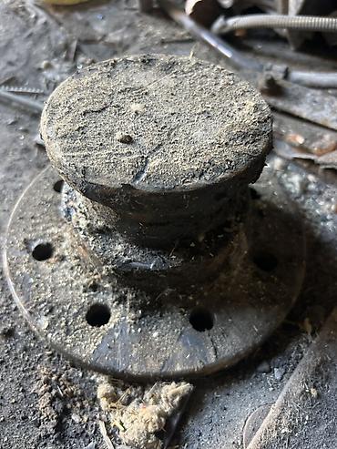 - Конфигурация: круглый фланец с рядом крепёжных отверстий (видно 6 отверстий по окружности) и центральной цилиндрической частью с круглой крышкой/заглушкой