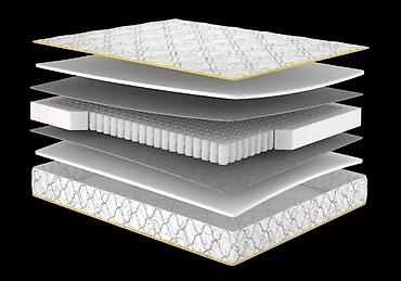 - Слоистая конструкция: эластичные комфортные прослойки сверху и снизу пружинного блока, защитные изоляционные слои для долговечности.