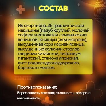 Мазь на основе яда скорпиона — это инновационное средство, созданное по рецептам китайской медицины. Благодаря сильному противовоспалительному, бактериостатическому и противогрибковому эффекту, она эффективно устраняет кожные инфекции, уничтожает патогены, проникая вглубь кожи до 450 мкм, и предотвращает рецидивы заболеваний.