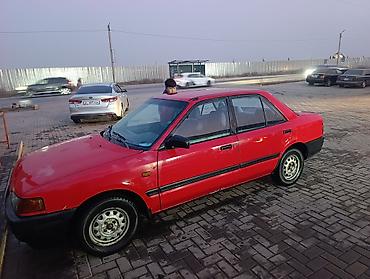 Mazda 323 седан, красный цвет, поколение конца 80-х — начала 90-х.