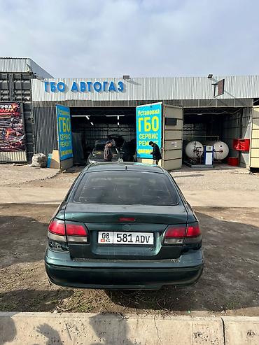 Mazda 626 седан, тёмно‑зеленый цвет, киргизские номера (08 KG 581 ADV).