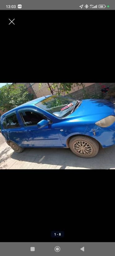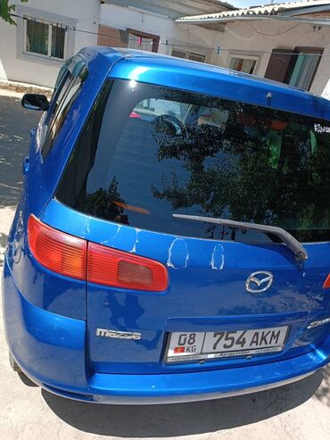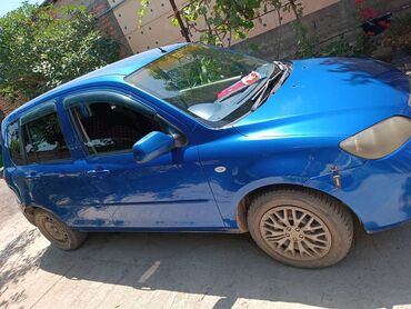 Mazda Demio, компактный 5‑дверный хэтчбек синего цвета.
