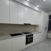 Современный кухонный гарнитур, выполненный в светлых тонах с имитацией мрамора, включает верхние и нижние шкафы, а также интегрированную раковину. Фасады шкафов имеют глянцевую поверхность с черным...