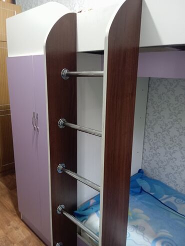 Двухъярусная кровать с прочным металлическим каркасом. Конструкция обеспечивает надежность и долговечность. Идеально подходит для оптимизации пространства в небольших помещениях, таких как общежити...