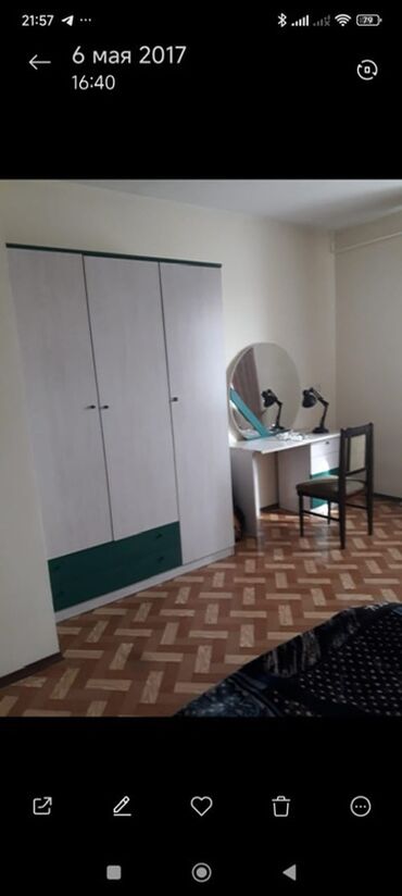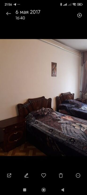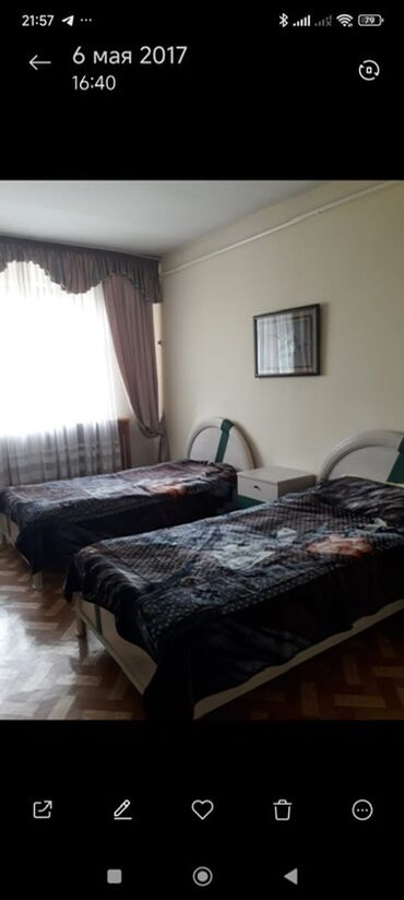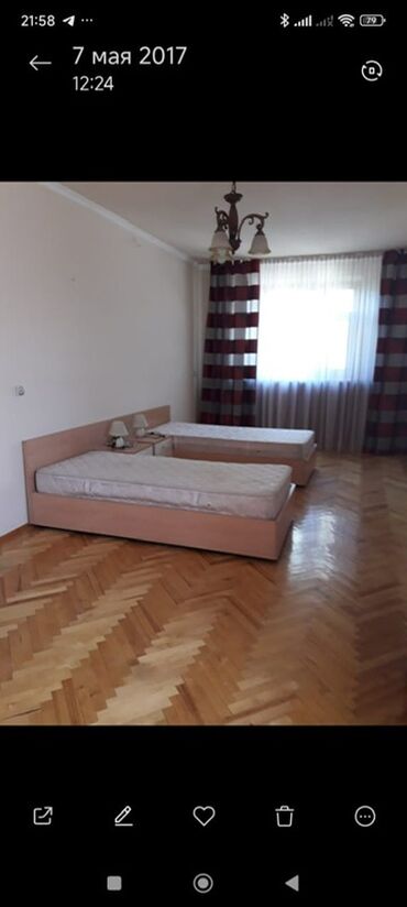 - Спальный гарнитур: две односпальные кровати с высокими изголовьями из ламинированного ДСП, матрасы в комплекте; прикроватная тумба между кроватями с полкой под лампы.