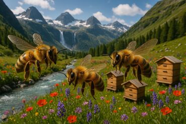 Натуральный мёд с собственной пасеки свежий и прошлогодний, с гор токтогула ( цветочный горный ) виды: майский 1 качка июльский 2 качка август 3 качка белый токтогульский . Есть прополис, воск,обр...