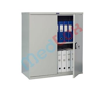- Низкий офисный/архивный шкаф: полки под папки формата A4/альбомные скоросшиватели, запираемая дверца на ключ.