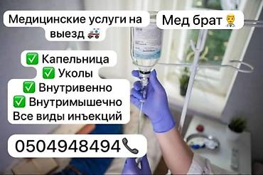 Медицинские услуги! Есть многолетний стаж работы выше 16 лет!!! Капельницы на выезд! По городу Бишкек Услуги: Внутривенные капельницы/В/М/П/К Внутривенный катетер/Мочевой катетер. Рабочие дни...