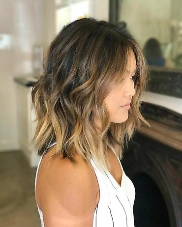 - Укладка с мягкой текстурной волной для демонстрации переливов.